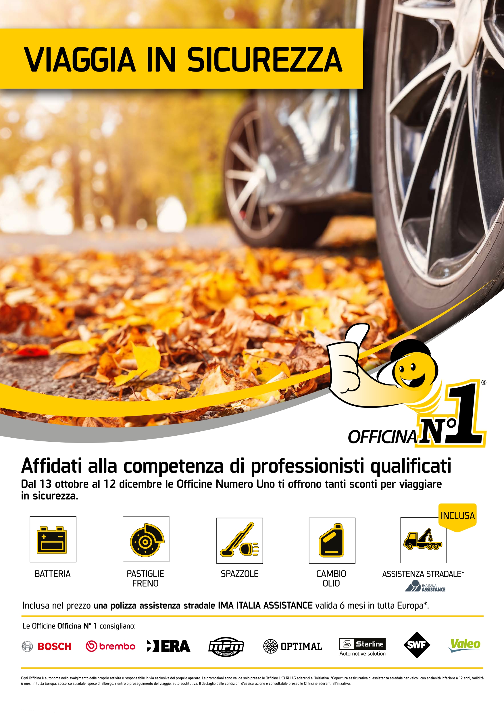 - inclusa nel prezzo una polizza di assistenza stradale IMA ITALIA ASSISTANCE valida 6 mesi in tutta Europa per veicoli con anzianità inferiore a 12 anni.